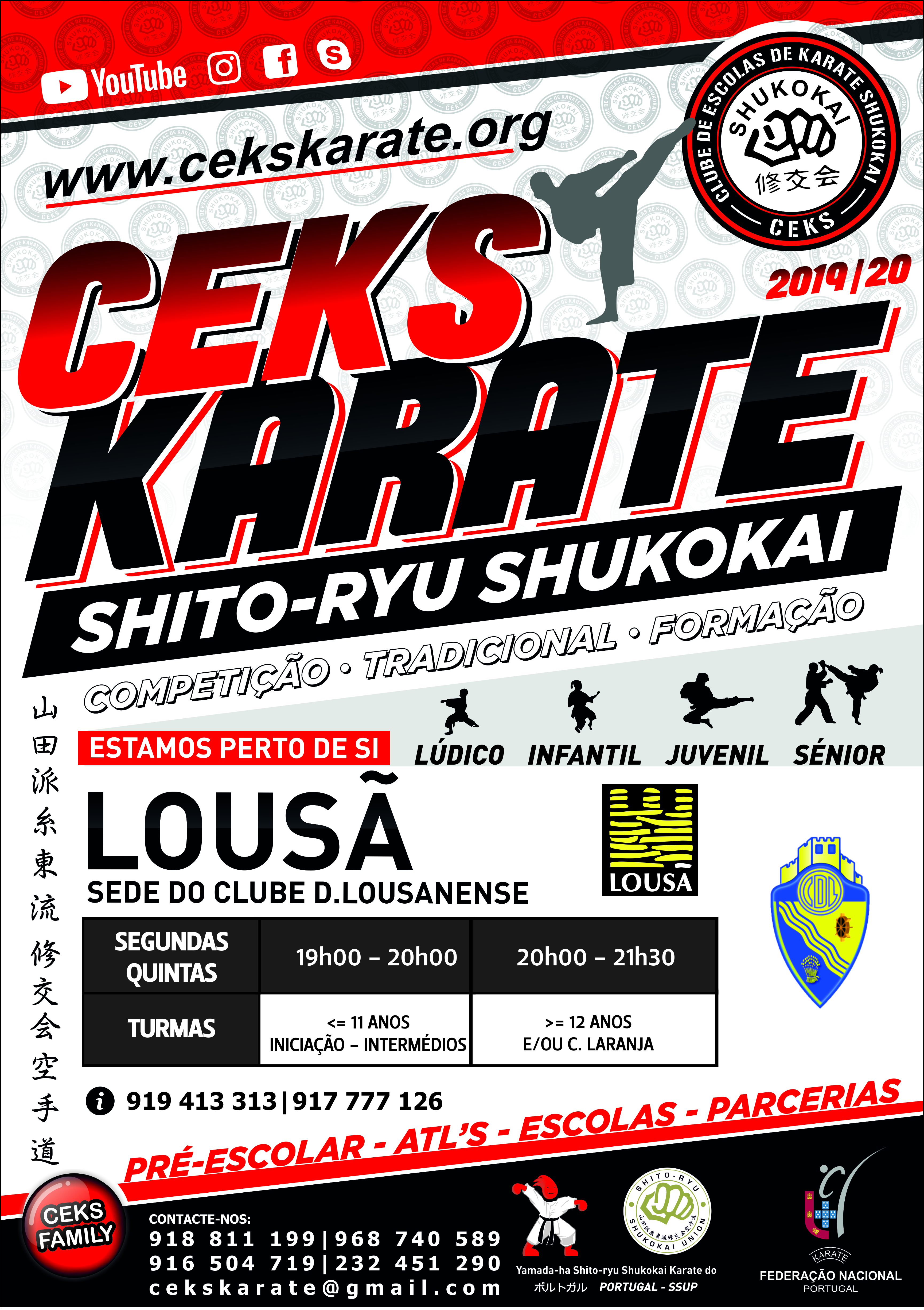 Segundas: 19H00 – 20H00 (<= 11 anos - Iniciação - Intermédios) Segundas: 20H00 – 21H30 (>= 12 anos – E/OU cinto laranja)